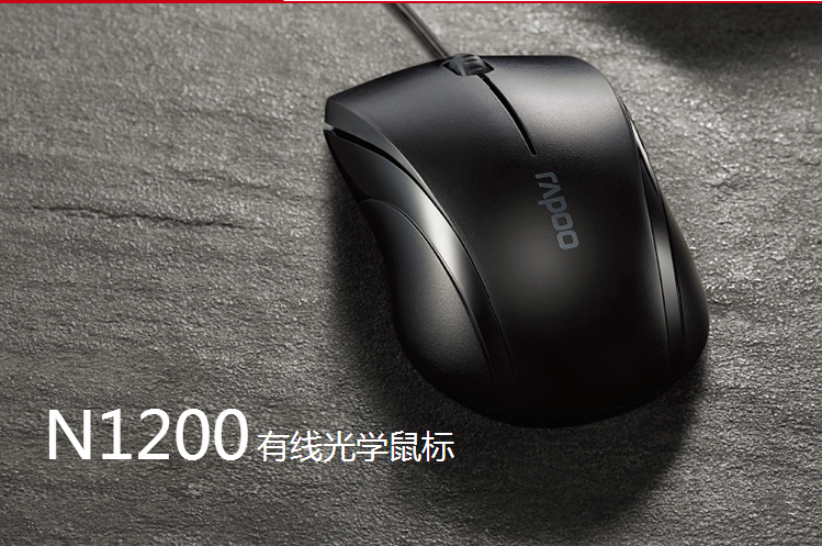 雷柏(Rapoo) N1200 有线鼠标 办公鼠标 静音鼠标 对称鼠标 笔记本鼠标 电脑鼠标 黑色