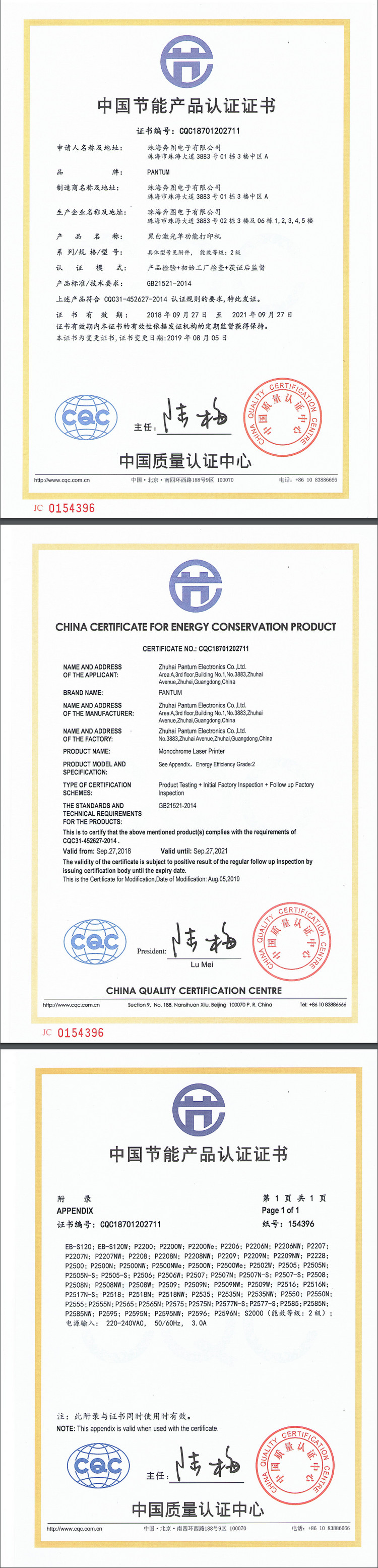 [节能证书编号] CQC18701202711