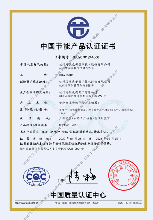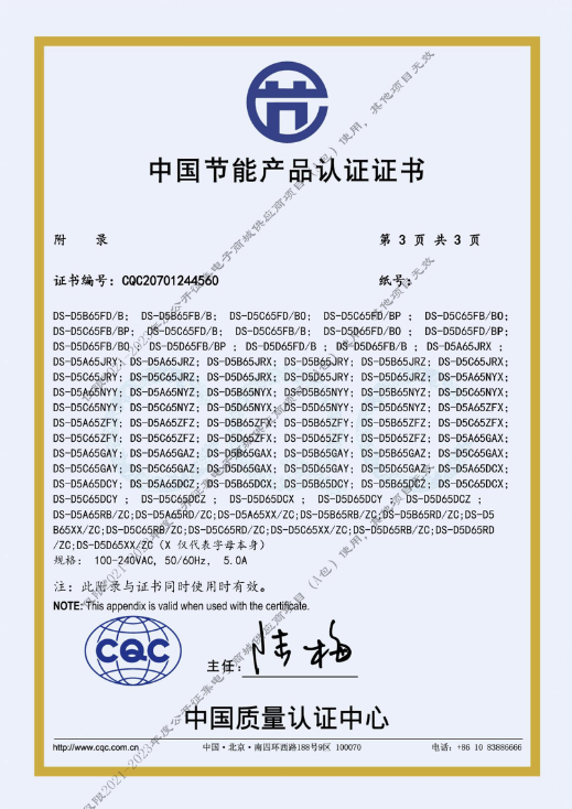 [节能产品证书编号] CQC20701244560