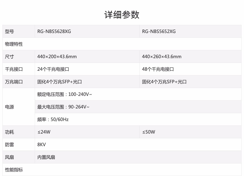 锐捷RG-NBS5652XG 三层交换机48口 高性能万兆交换机