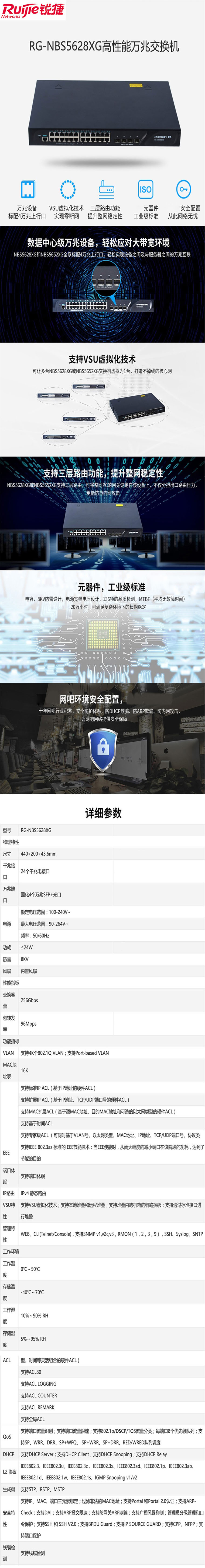 锐捷 Ruijie RG-NBS5628XG 交换机 高性能万兆