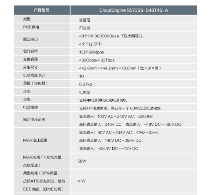 华为S5735S-S48T4S-A 企业级三层48口千兆以太网+4口千兆光 含1个60W交流电源 交换机