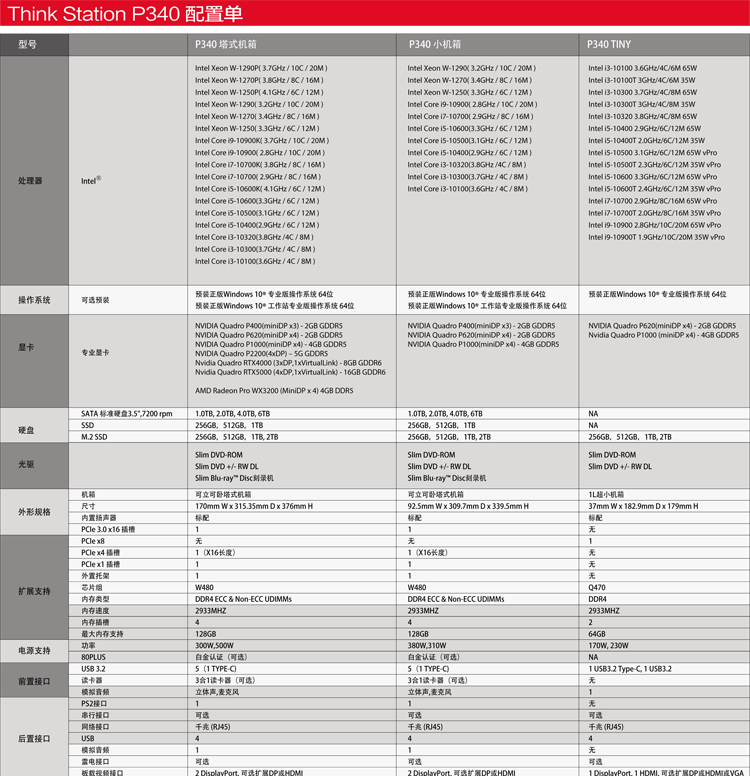 商品属性 [品牌] 联想 [型号] Thinkstation P340 [商品单位] 台 [参数] i9-10900/W480芯片组/32G/512G SSD+2T机械硬盘/GTX1660SUPER 6GB独显/DVDRW/500W电源/USB键鼠/预装WIN10 HOME/17L机箱/23.8寸显示器
