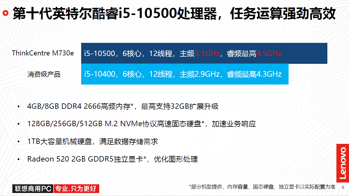 商品属性 [品牌] 联想 [型号] ThinkCentre M730e-A020 [参数] Intel酷睿i5-10500/8GB内存/128GB SSD+1TB硬盘/无光驱/Radeon 520 2GB独立显卡/260W 85%电源/7.4L小机箱/USB键盘/USB鼠标/Win10 Home 64bit/三年上门/23.8寸显示器 [屏幕尺寸] 23.8 [节能产品证书编号] CQC20701251929 [商品单位] 台