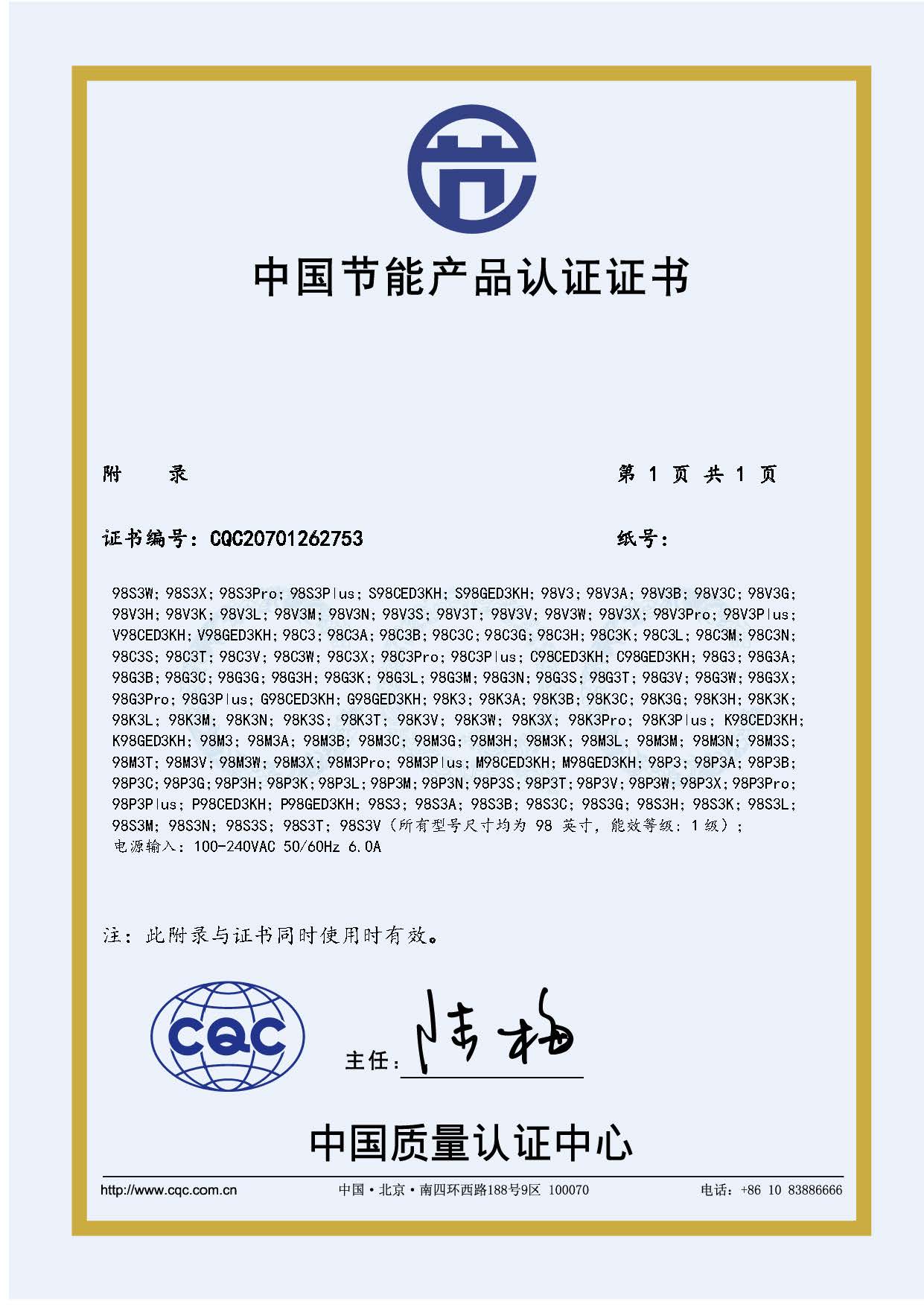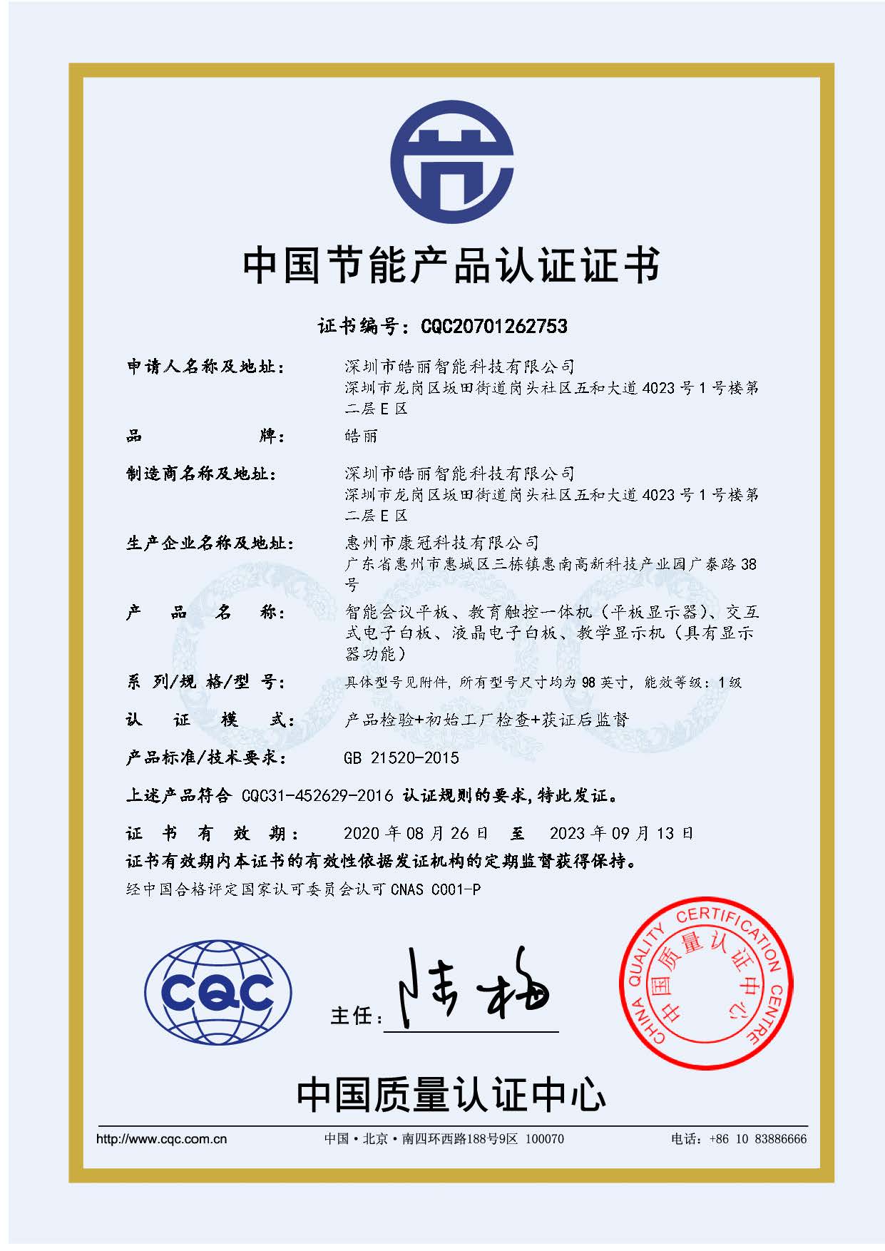 [节能产品证书编号] CQC20701262753