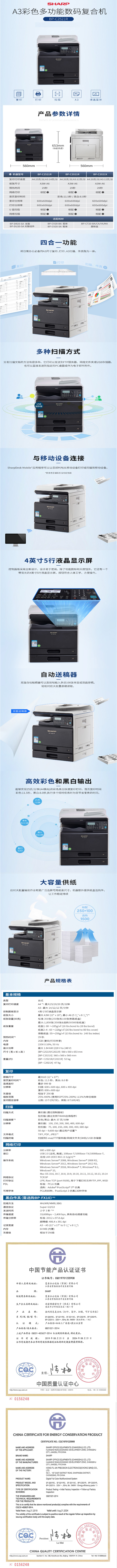 [参数] 预热时间 29秒 复印速度 A4:25页/分钟 连续复印张数(张) 999份 最大功耗 1.84kw 首页复印时间 彩色∶11.5秒,黑白∶8.0秒