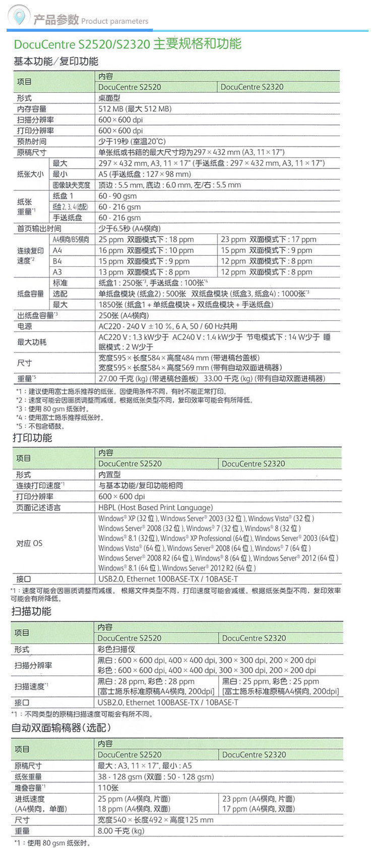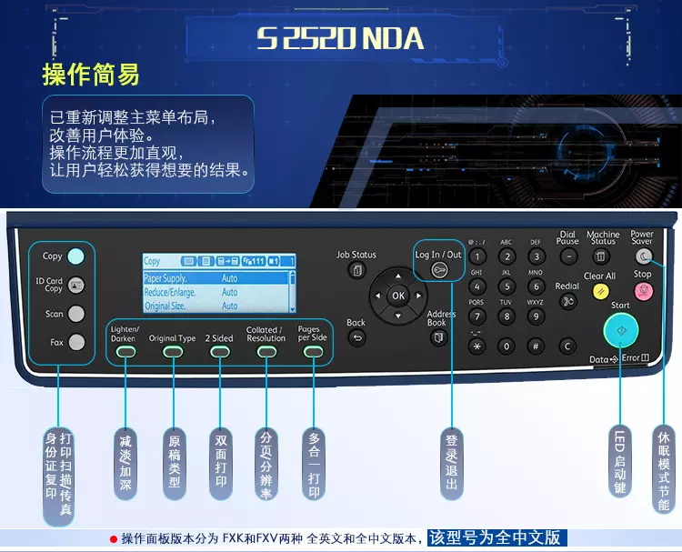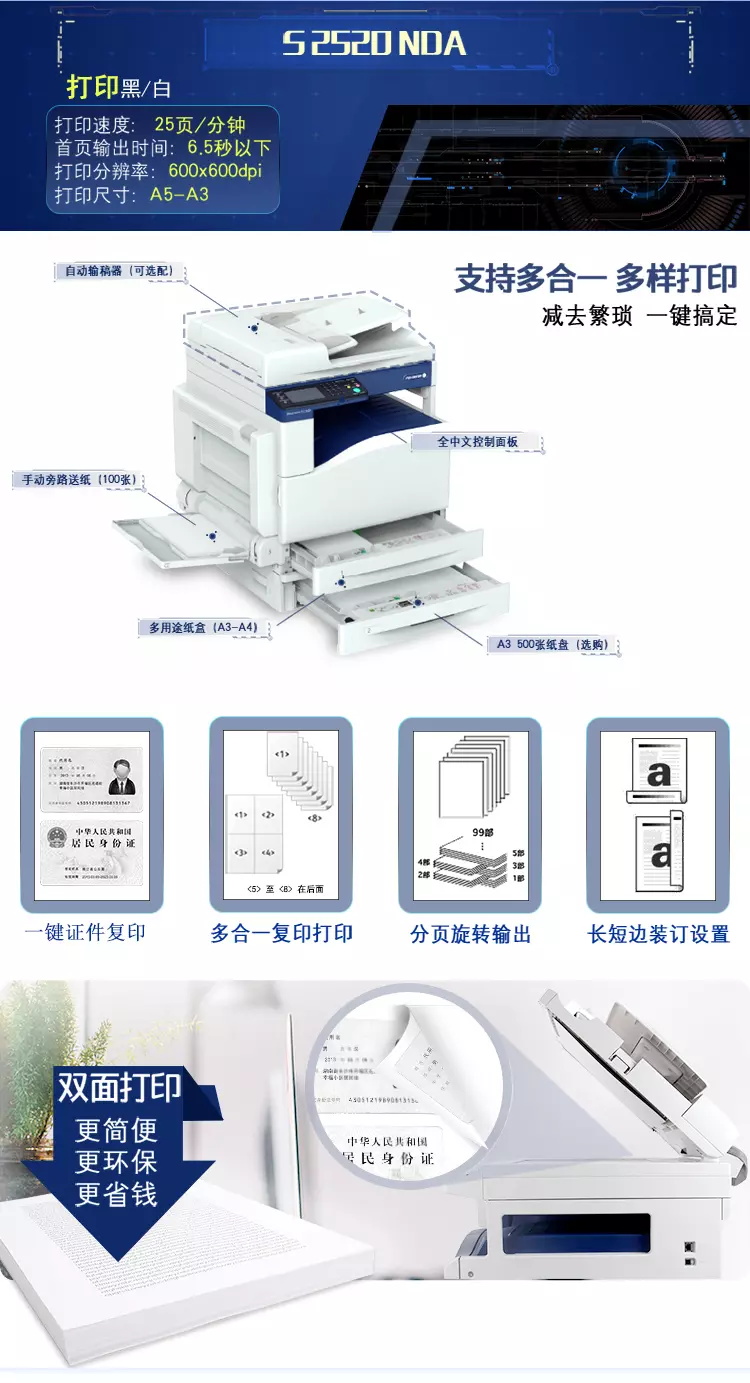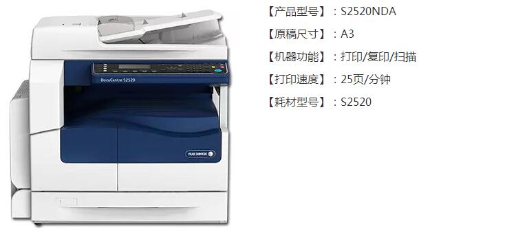 富士施乐 DocuCentre S2520NDA 黑白激光复合复印机(单纸盒+双面器+自动输稿器+工作台+保修一年) 单位:台