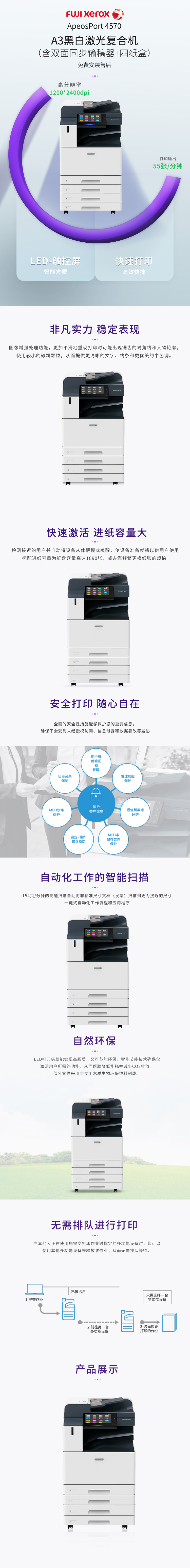 富士施乐 ApeosPort 4570 CPS 4Tray 黑白激光复合复印机(四纸盒/双面器/自动输稿器/C3型骑马装订器/保修一年)