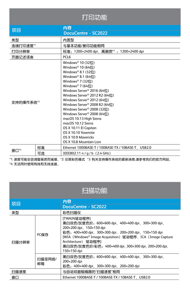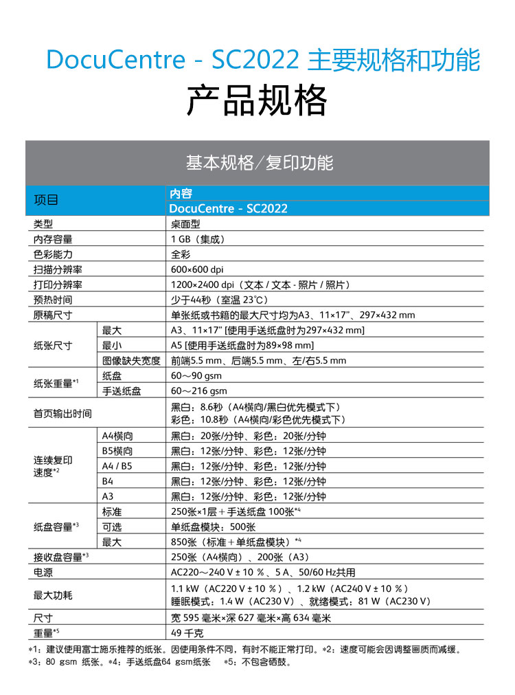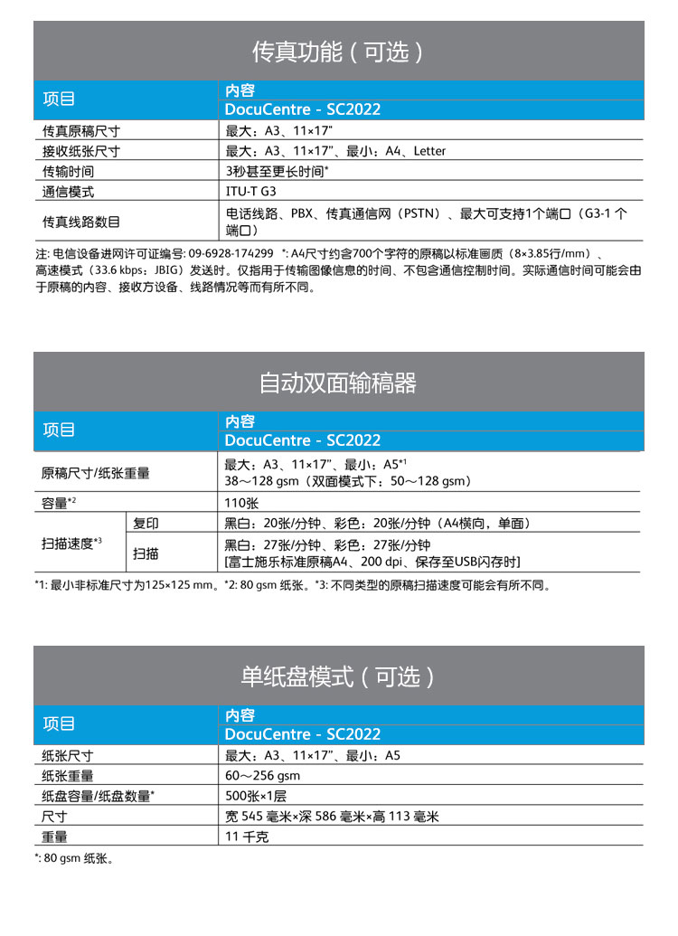 商品属性 [品牌] 富士施乐 [型号] DocuCentre SC2022CPS DA [商品单位] 台