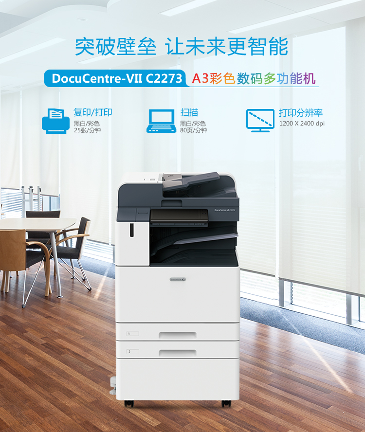 富士施乐 DocuCentre-VII C2273 2Tray 彩色激光复合复印机(双纸盒/双面器/自动输稿器/USB组件/工作台/保修一年)