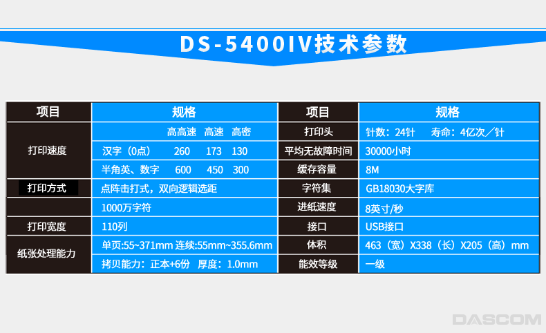 得实(Dascom)DS-5400IV 高速复写110列平推24针票据 证卡针式打印机
