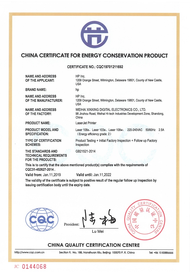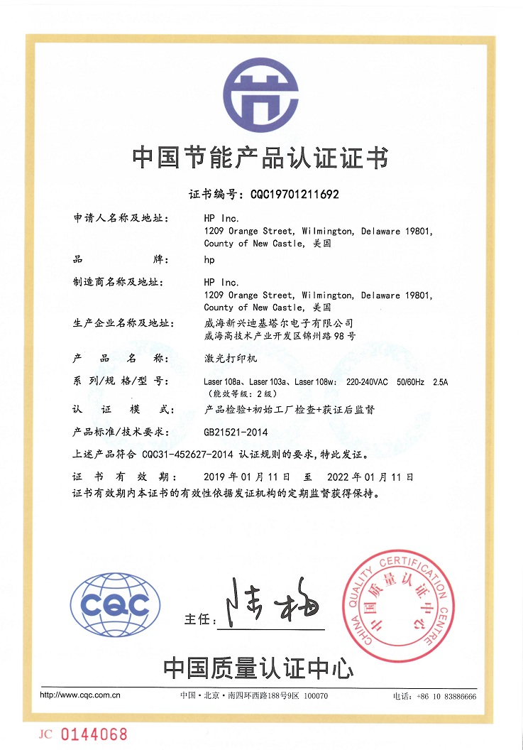 商品属性 [品牌] 惠普 [型号] Laser 108w [节能证书编号] CQC19701211692 [打印分辨率] 1200×1200dpi [黑白打印速度] 20ppm [最大打印幅面] A4 [自动双面打印] 手动 [质保时间] 1年 [耗材类型] 一体式硒鼓 [数据接口] USB2.0,无线802.11 b/g/n