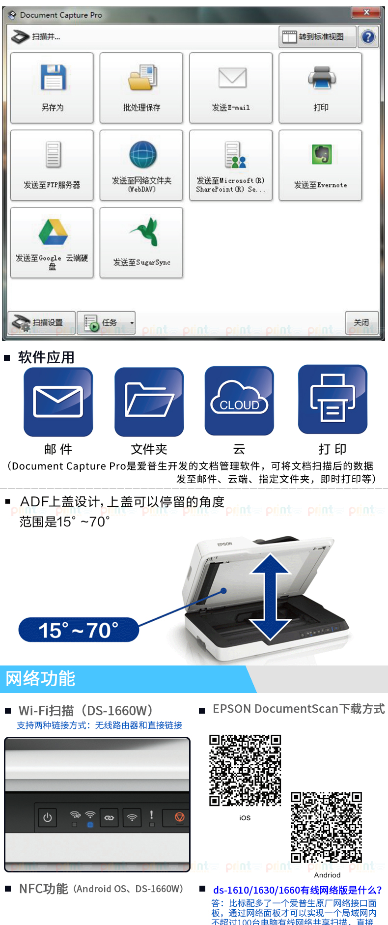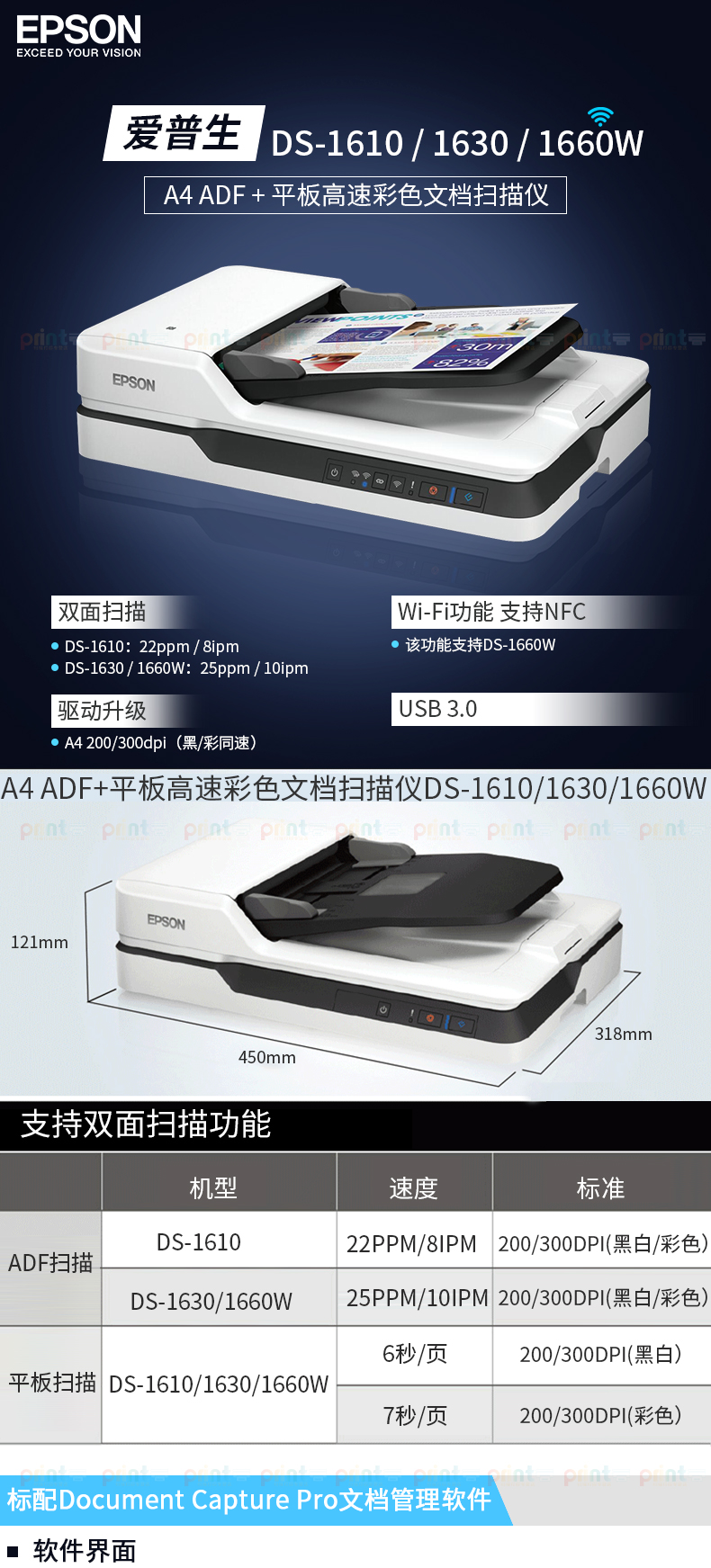 爱普生 DS-1610 22ppm高速彩色文档扫描仪 自动进纸 两年质保