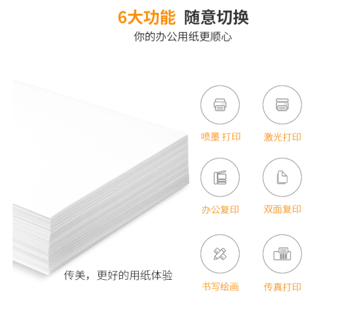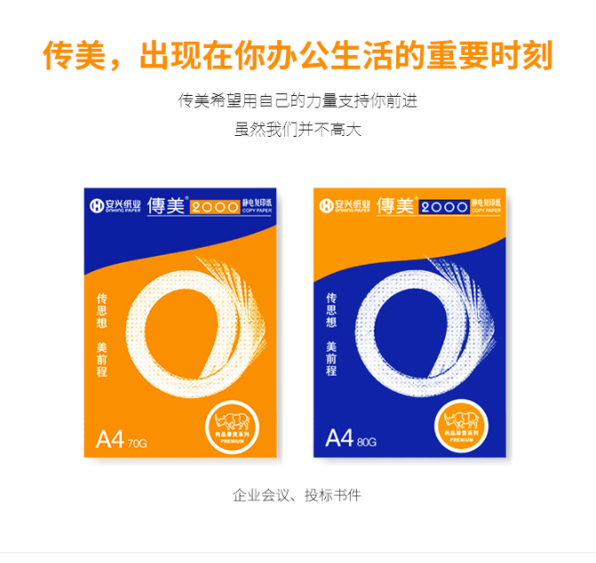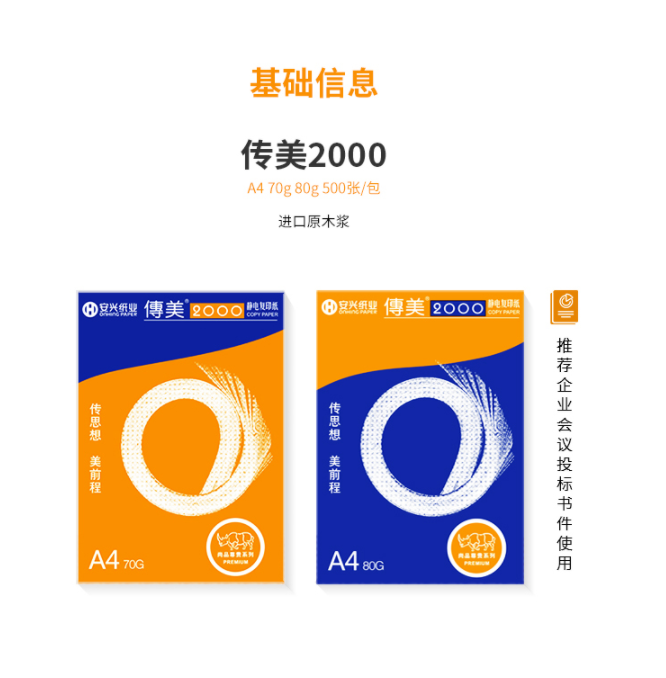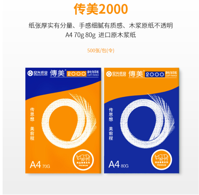传美2000复印纸 A4 70G 500张/包 10包/箱 单位:箱