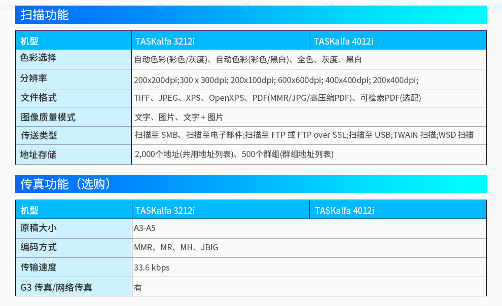 本产品包含TASKalfa 3212i、DP-7110、CB-7101、Scan Extension Kit(A)AC 、三年质保
