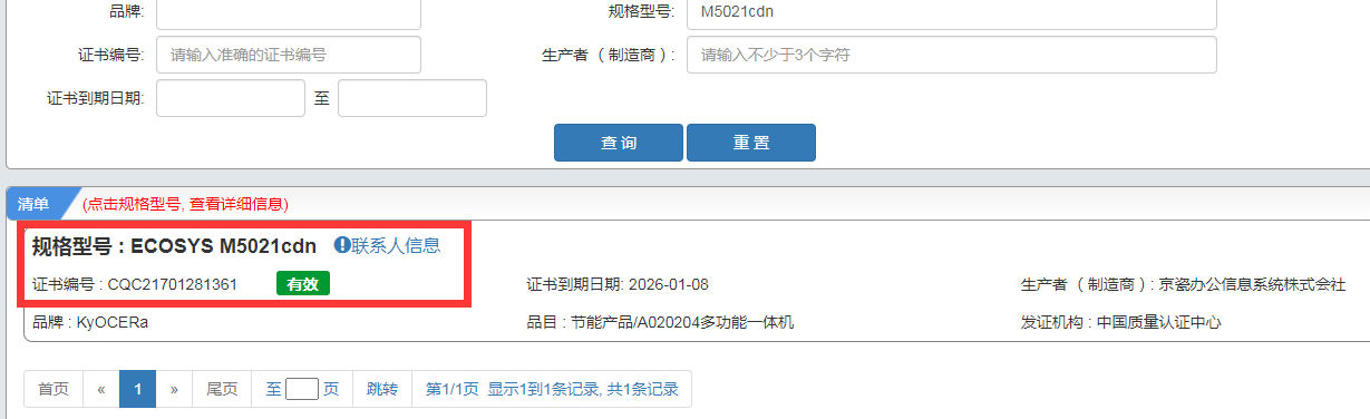 商品属性 [品牌] 京瓷 [型号] M5021cdn [商品单位] 台 [节能证书编号] CQC21701281361 [幅面] A4 [打印分辨率] 600×600DPI [涵盖功能] 打印/复印/扫描 [黑白打印速度] 21PPM [彩色打印速度] 21PPM [双面打印] 支持 [网络打印] 支持 [质保时间] 1年 [数据接口] USB 2.0 高速x1; 以太网10BASE-T/100BASE-TX/1000BASE-T; USB 主机接口 (USB 主机)x1, [随机附件] 标配 [售后服务内容] 1年质保 [产品类型] 彩色激光