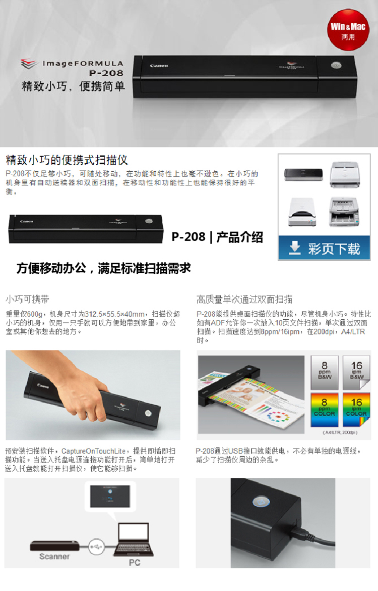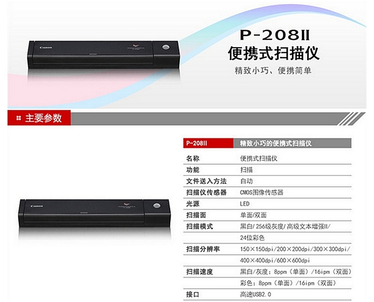 当前位置: 首页 > 政采分类 > 电脑、办公设备 > 办公设备 > 扫描仪 > 高速双面扫描仪 > 佳能P-208II 高速扫描仪便携式扫描仪