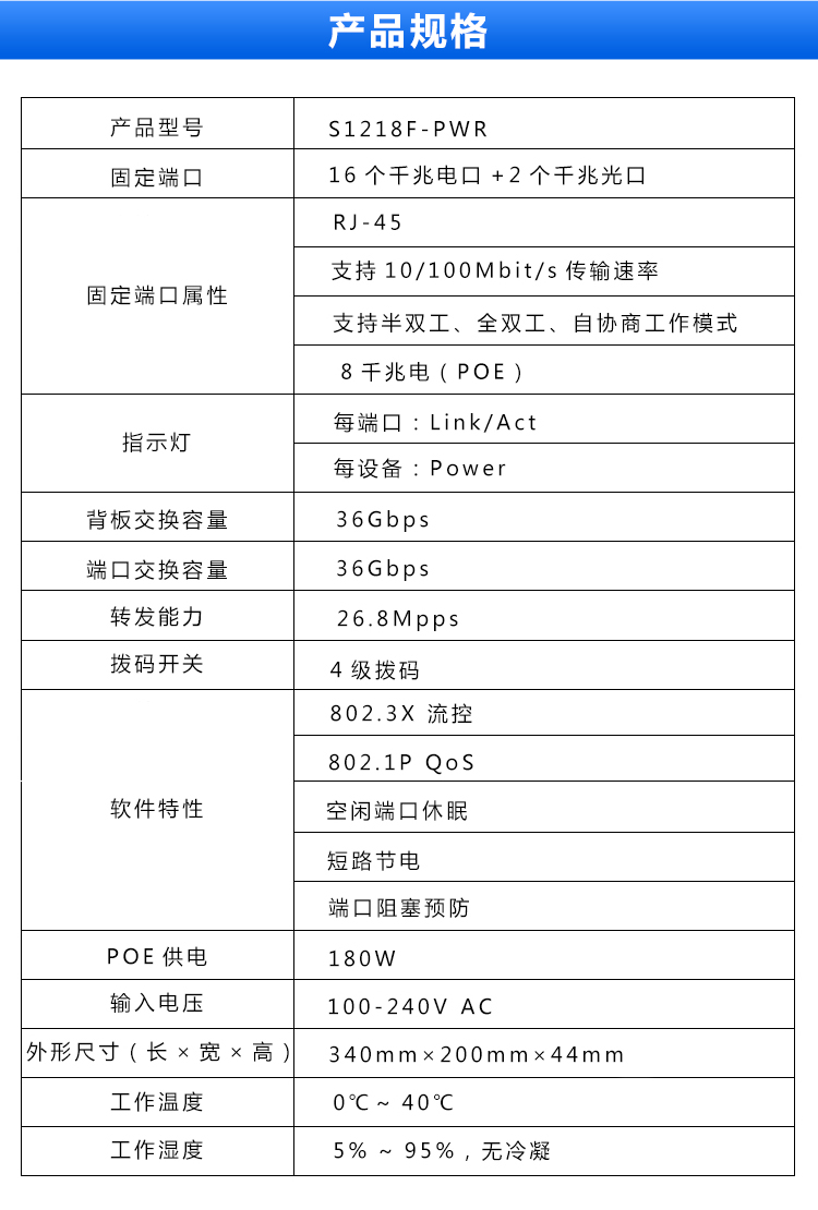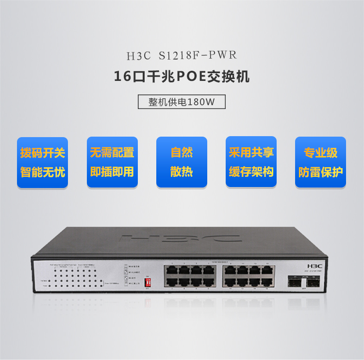 华三 S1218F-PWR 16口全千兆2千兆光即插即用POE交换机