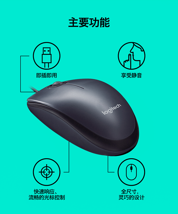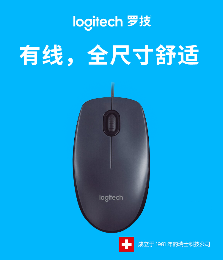 罗技(Logitech) M90有线鼠标USB通用办公笔记本台式机家用 M90 黑色