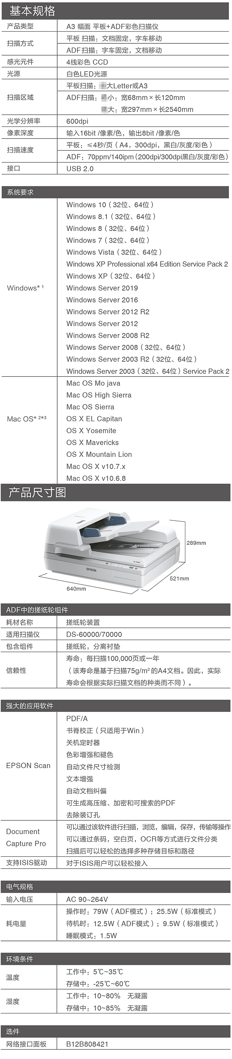 爱普生(EPSON)DS-70000 A3 高速彩色文档扫描仪 邮政