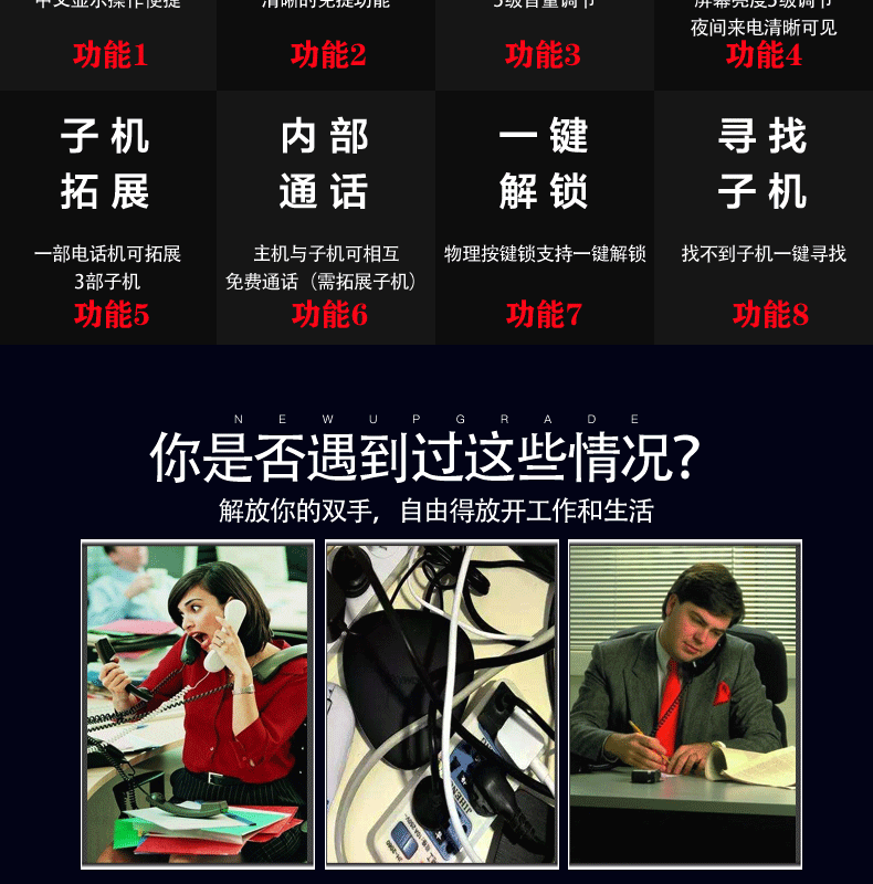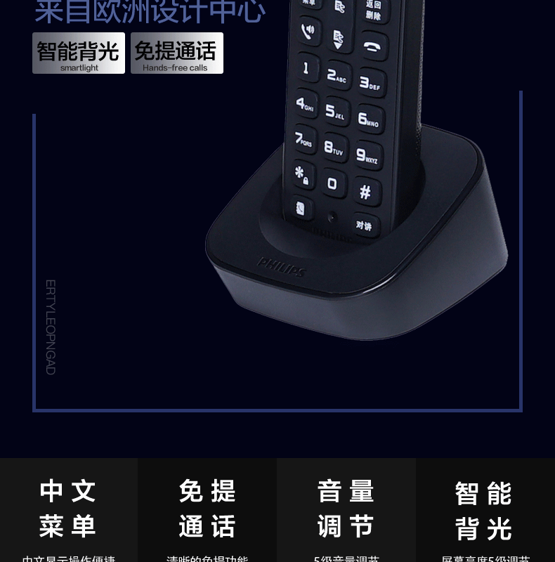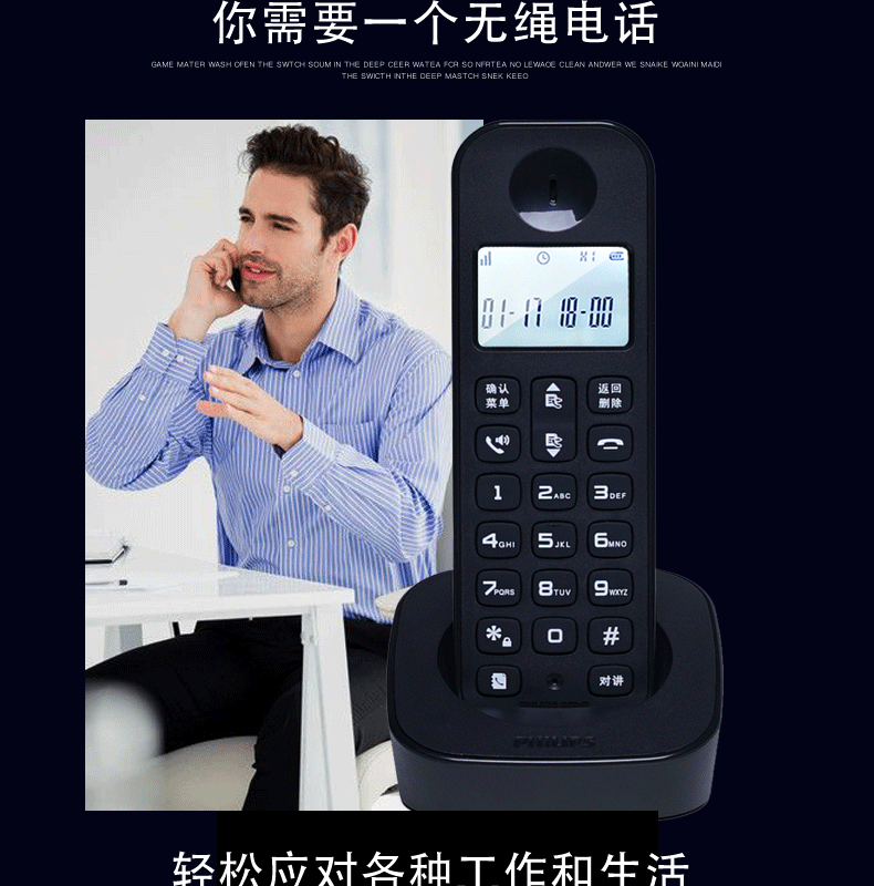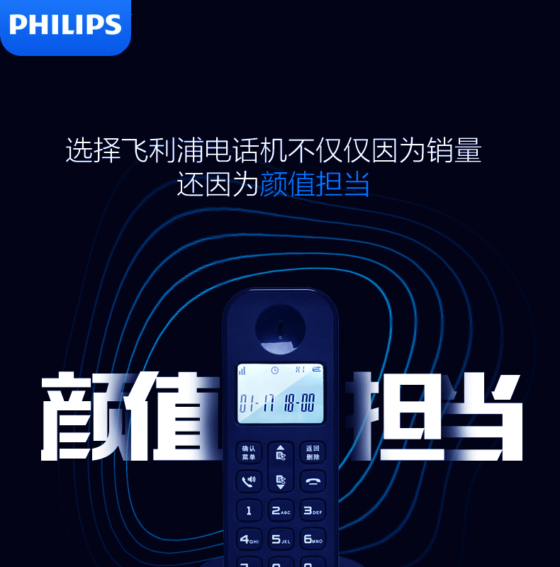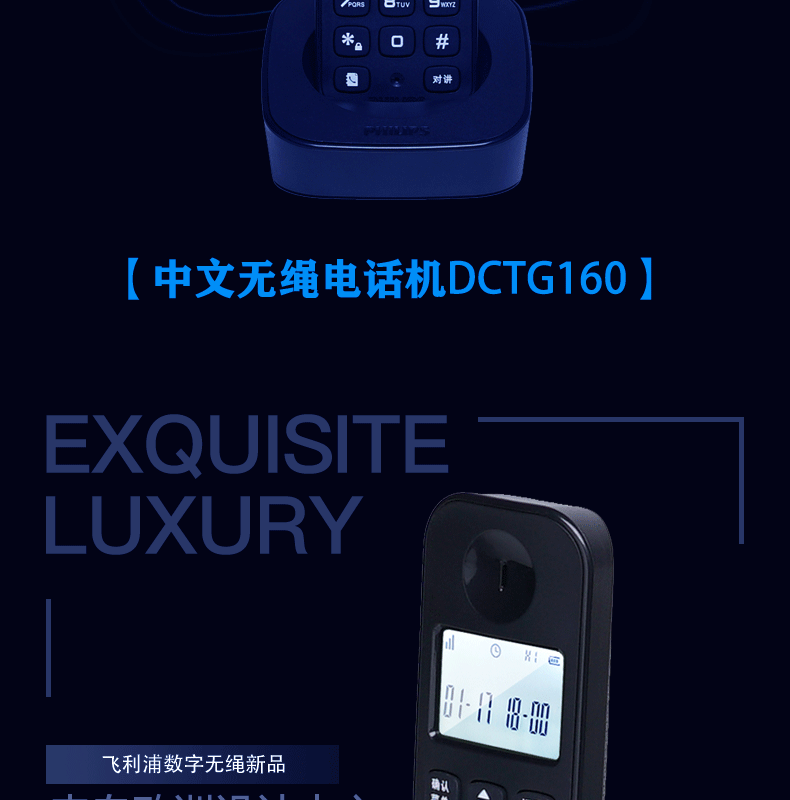 飞利浦 PHILIPS 无绳电话机 无线座机子母机家用办公中文大音量持久待机 DCTG160单机 黑色