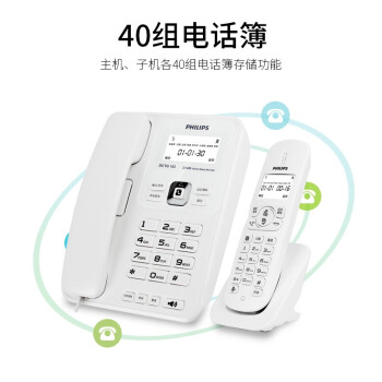 飞利浦(PHILIPS)无绳电话机 无线座机 子母机 办公家用 可扩展子机 中文菜单 双免提 DCTG182白色一拖一