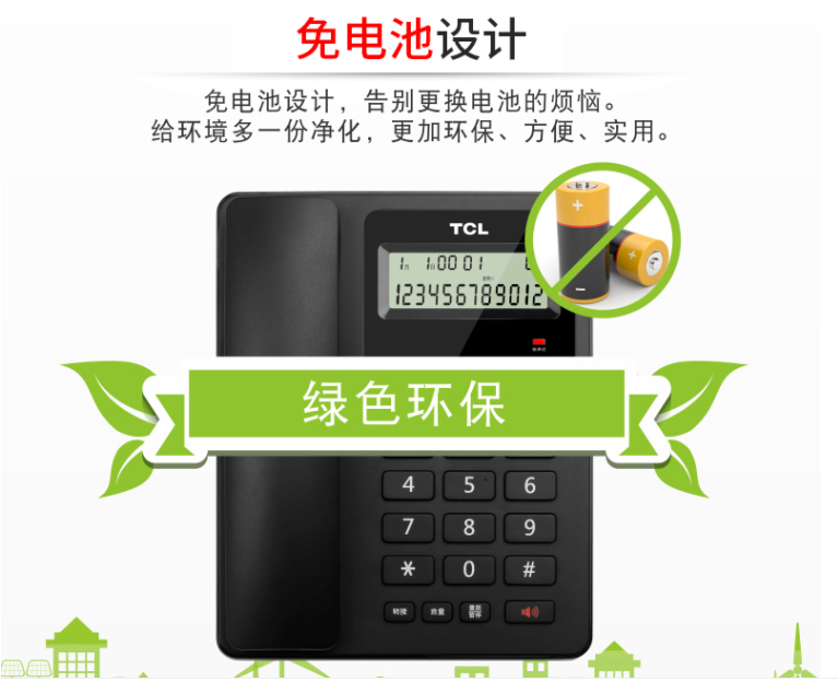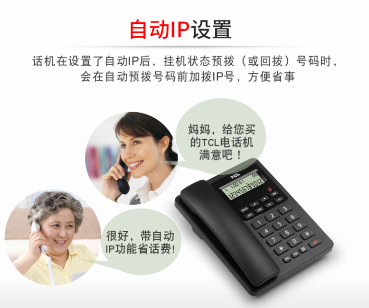 TCL 电话机座机 固定电话 办公家用 大屏幕 来电显示 免电池 HCD868(60)TSD 黑色
