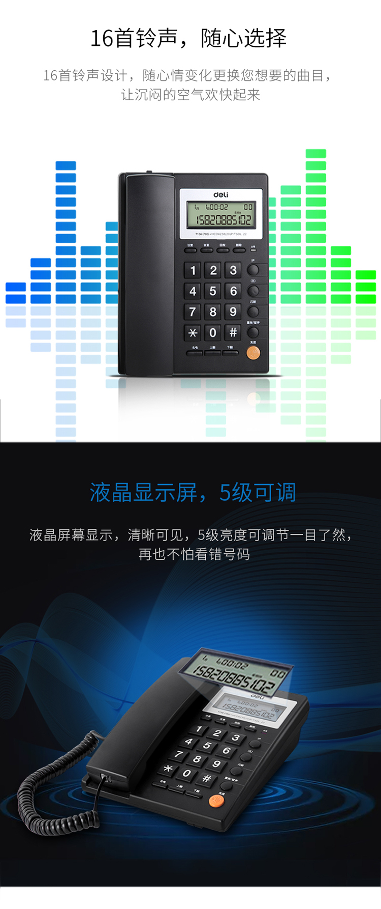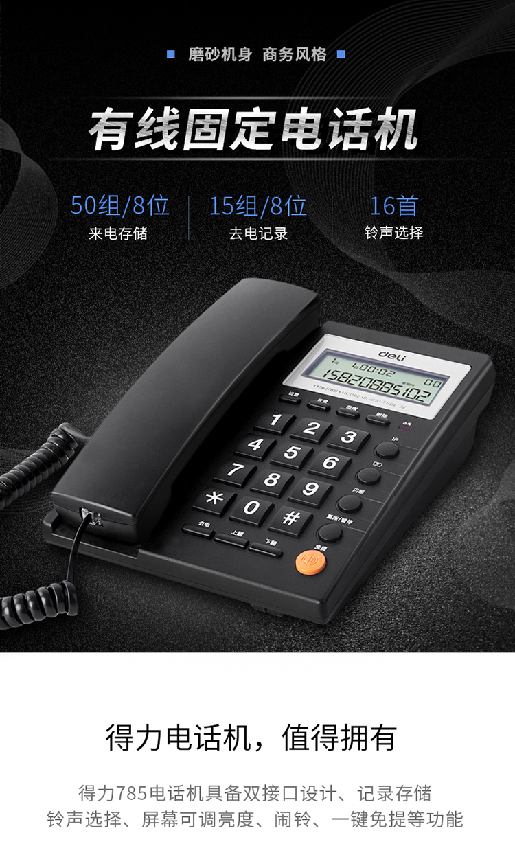 得力(deli)电话机座机 固定电话 办公家用 免提通话 可接分机 785黑