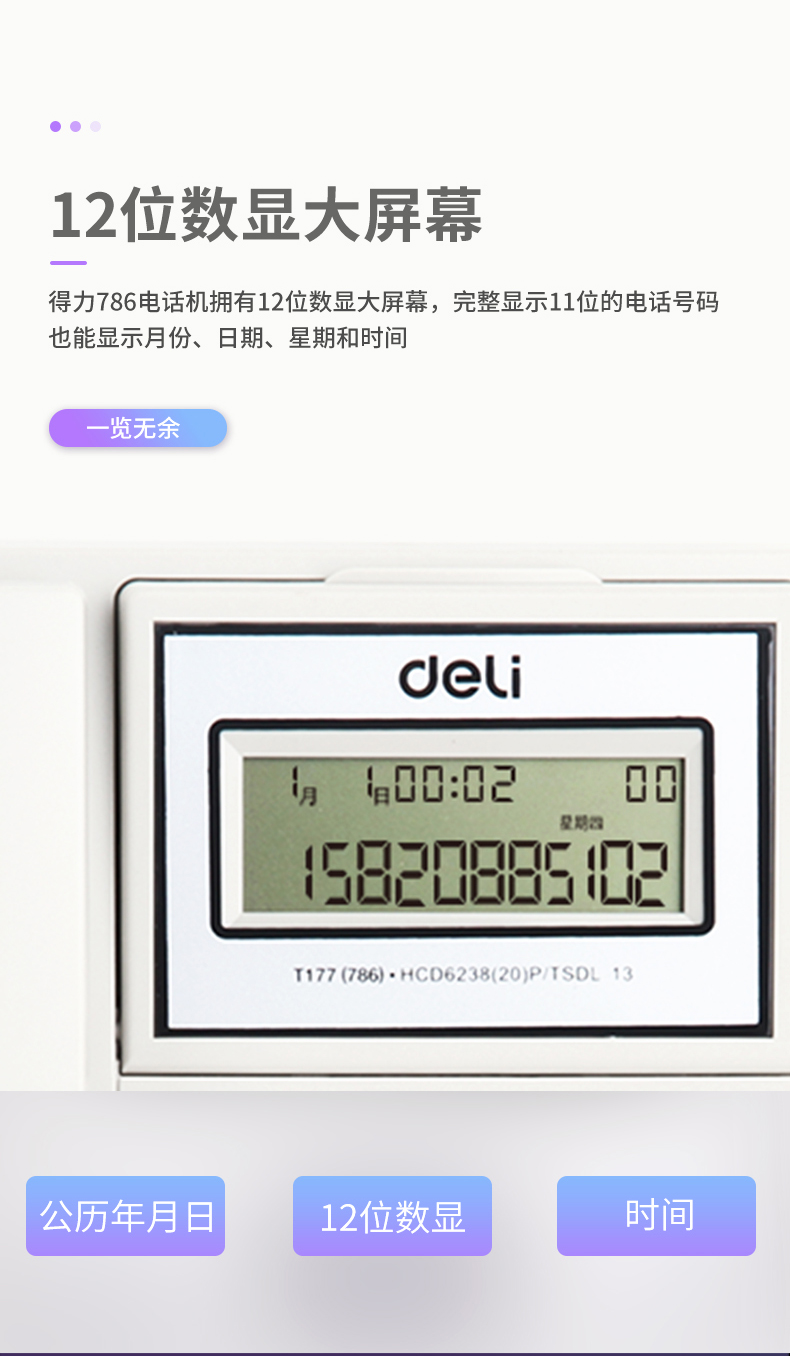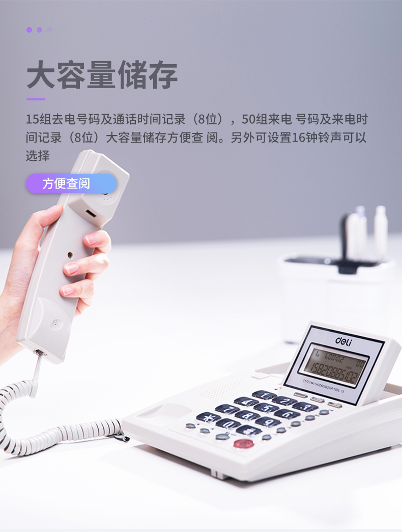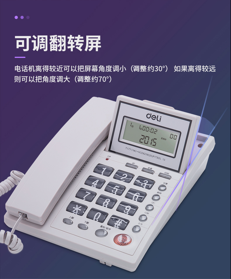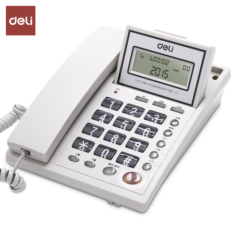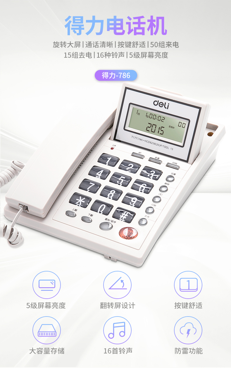 得力(deli)电话机座机 固定电话 办公家用 来电显示 亮度可调翻转翘头 786 白