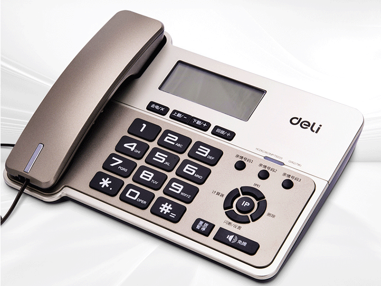得力(deli)电话机座机 固定电话 办公家用 横式大屏 三组亲情号一键呼叫 796 香槟金