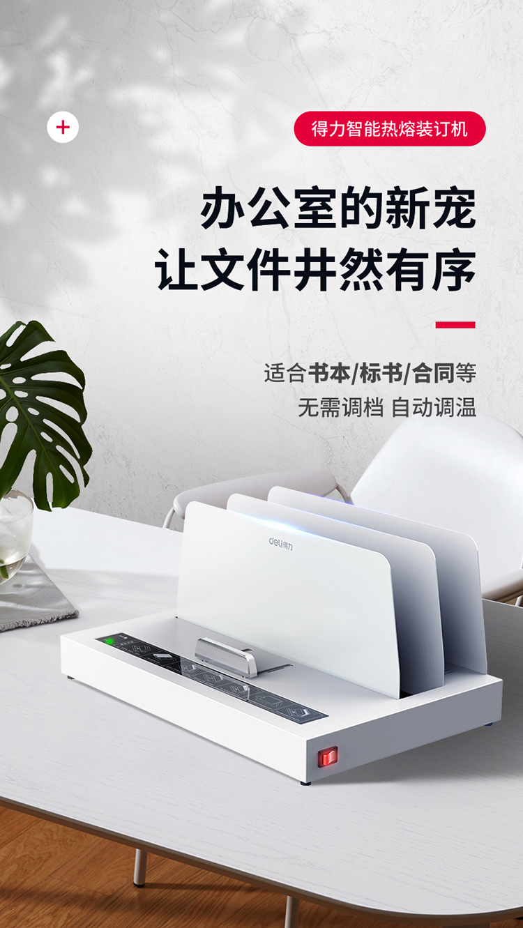 得力(deli)3882热熔财务装订机 合同标书档案文件胶装机(装订厚度50mm)