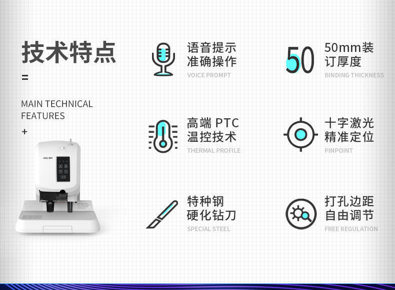 得力(deli)3880 激光定位财务凭证半自动装订机 标书文案卷宗电动档案打孔机