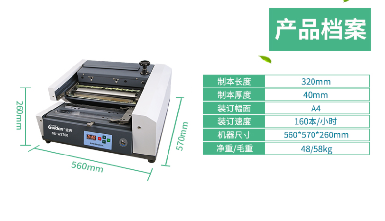 金典 GOLDEN GD-W3700无线胶装机全自动过胶机 标书财务会计报告装订机 热熔装订机