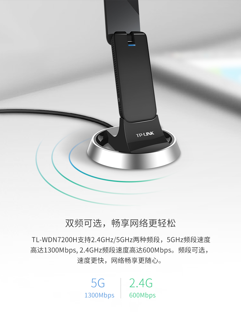 TP-LINK TL-WDN7200H 1900M穿墙千兆双频USB无线网卡 台式机笔记本随身wifi接收器 高增益 USB3.0