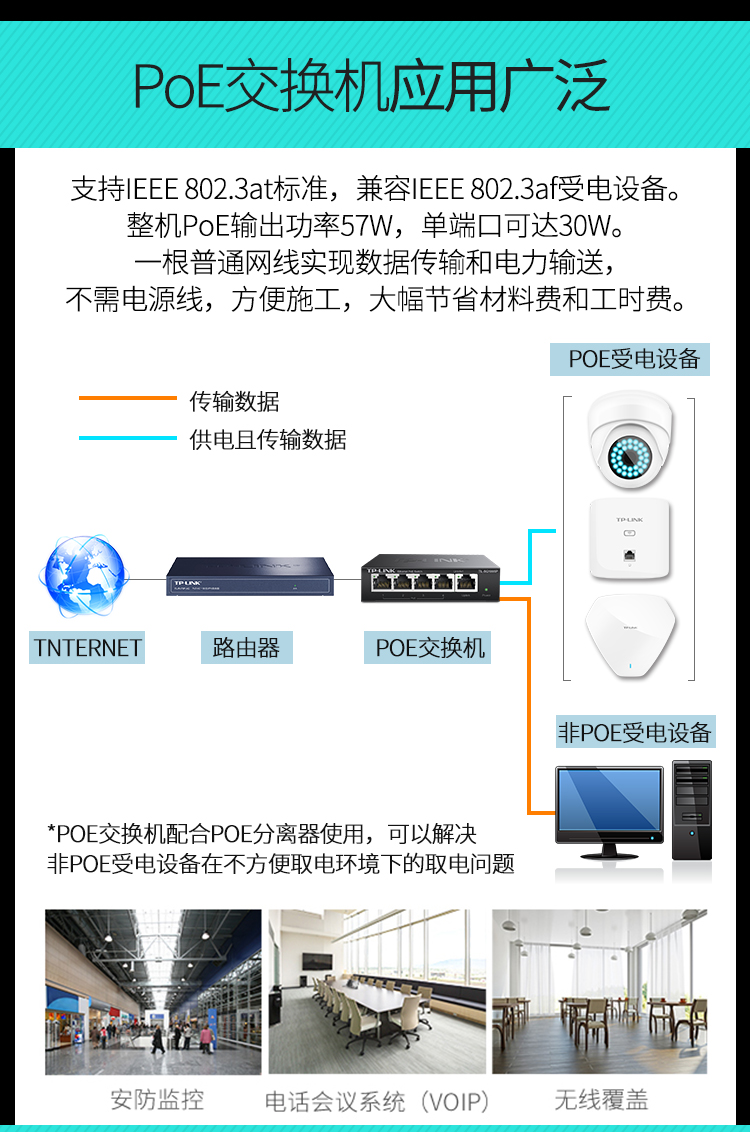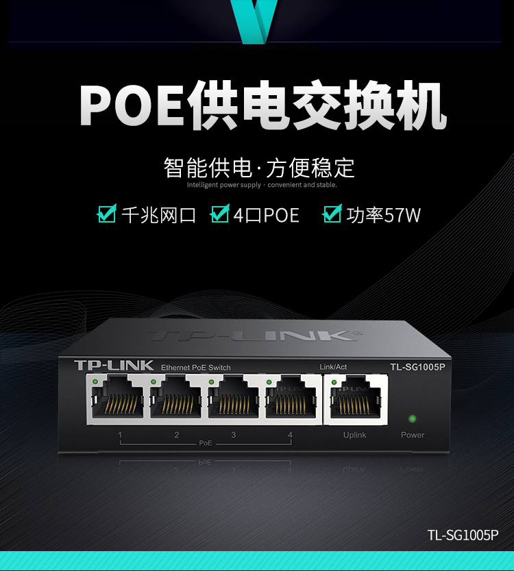 TP-LINK 5口千兆PoE交换机 4口PoE非网管交换机 监控网络网线分线器 企业级交换器 分流器 TL-SG1005P