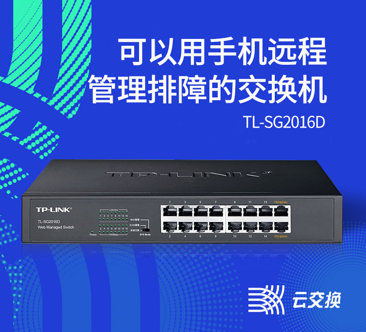 TP-LINK 云交换TL-SG2016D 16口全千兆Web网管 云管理交换机 企业级交换器 监控网络网线分线器 分流器