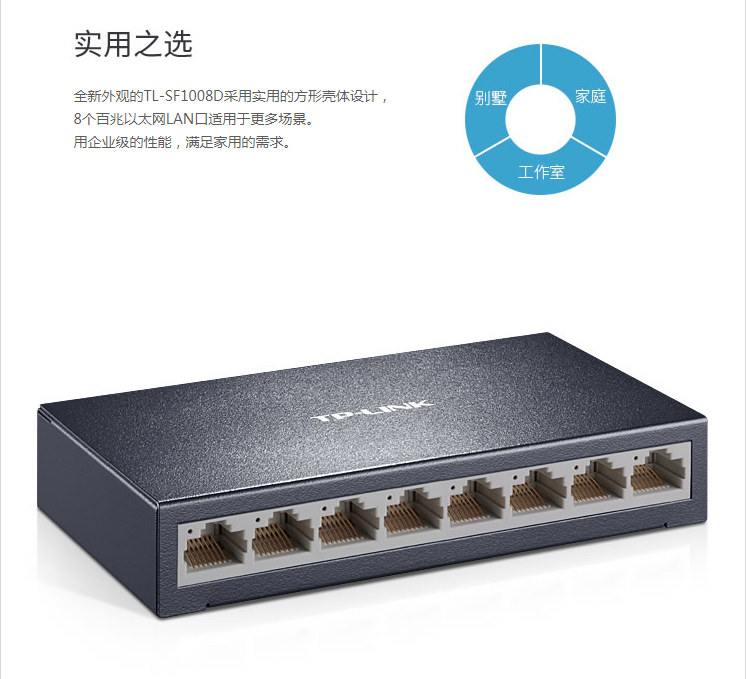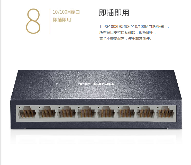 TP-LINK 8口百兆交换机 监控网络网线分线器 家用宿舍分流器 TL-SF1008+