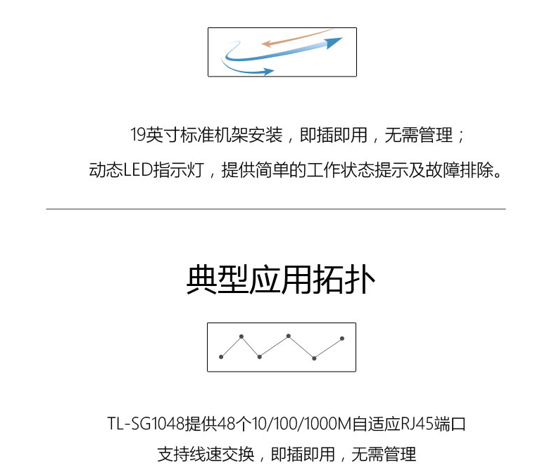 TP-LINK 48口全千兆非网管交换机 企业级交换器 监控网络网线分线器 分流器 TL-SG1048