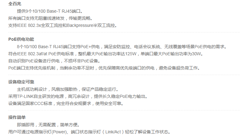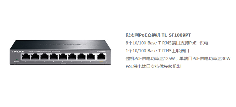 TP-LINK TL-SF1009PT 9口百兆8口POE非网管PoE交换机