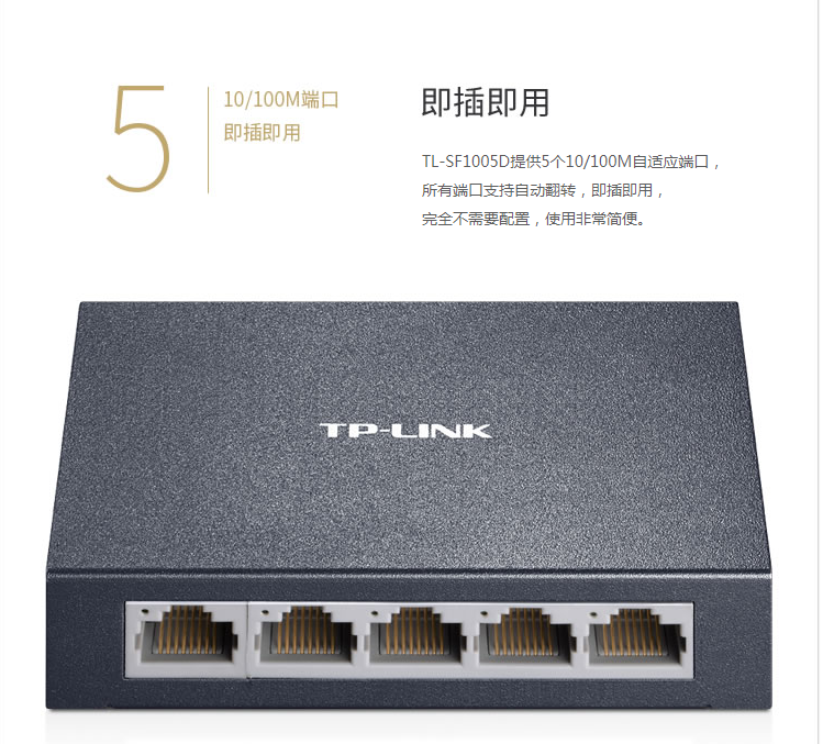 TP-LINK 5口百兆交换机 4口监控网络网线分线器 分流器 金属机身 TL-SF1005D