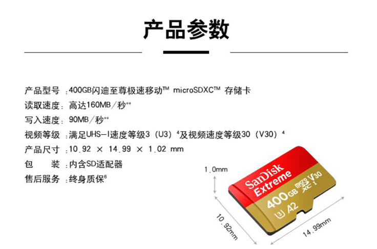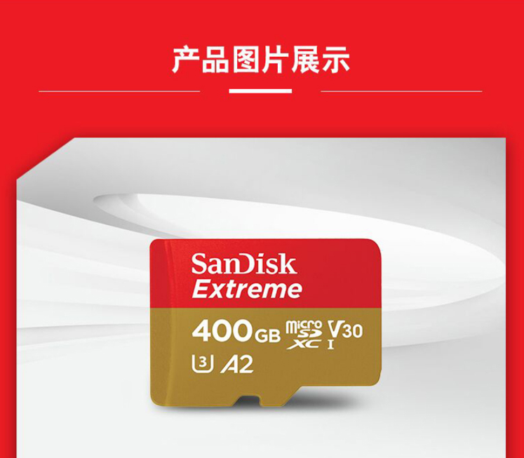 闪迪(SanDisk)A2 400GB TF(MicroSD)存储卡C10 V30 U3 4K 至尊极速移动版内存卡 读速160MB/s 写速90MB/s