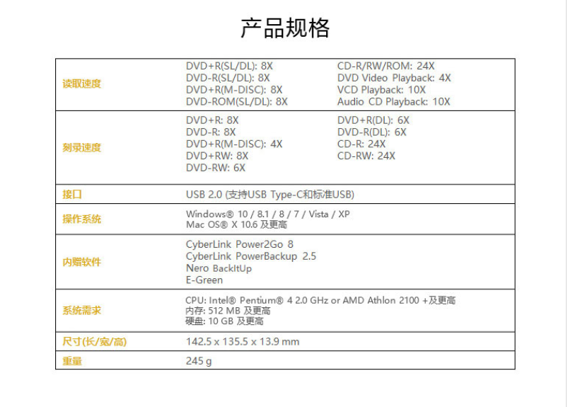 华硕(ASUS) 8倍速 外置DVD刻录机 移动光驱 支持USB/Type-C接口 (兼容苹果系统/SDRW-08U9M-U)-银色