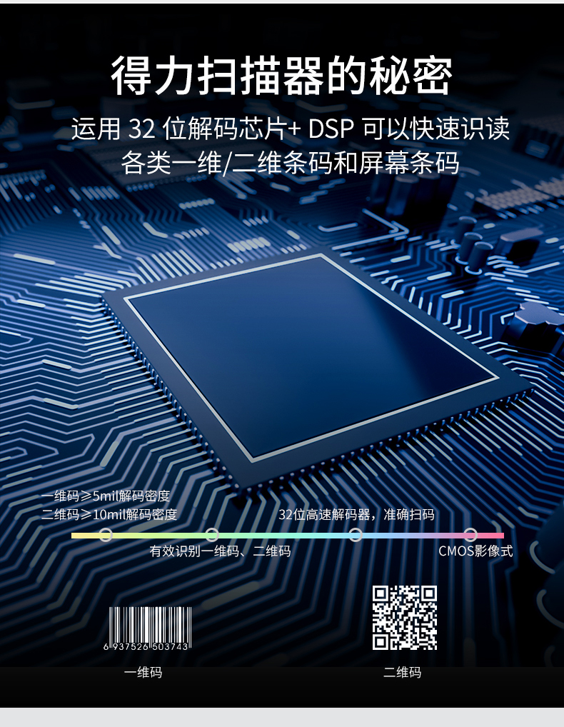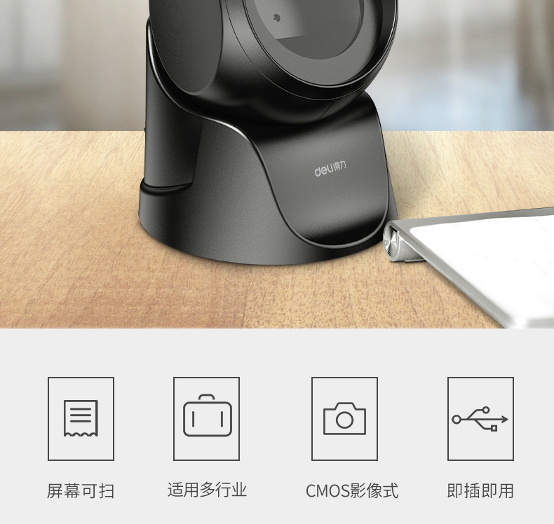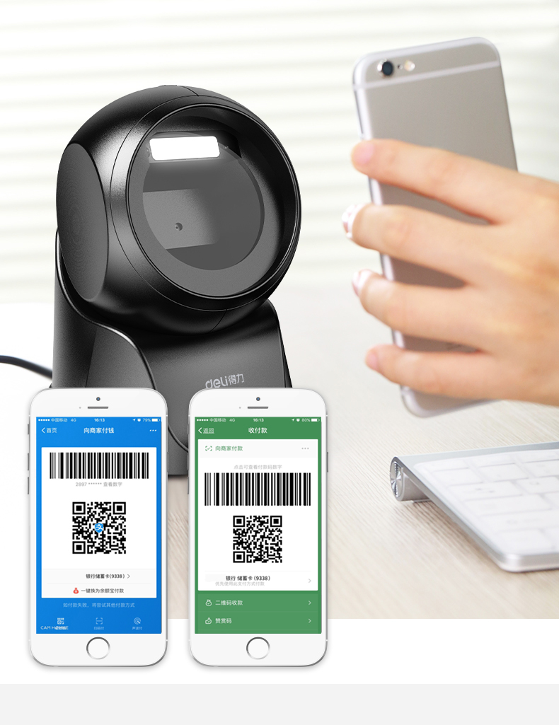 得力(deli)二维影像式扫描平台扫描枪 餐饮零售快递仓储物流超市商品条码扫描器 手机屏幕扫码收款14963