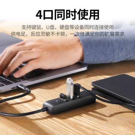 绿联 Type-C3.0扩展坞 USB-C高速4口分线器集线器HUB拓展坞 笔记本电脑一拖多延长线转换器转接头0.25米10916