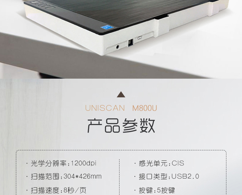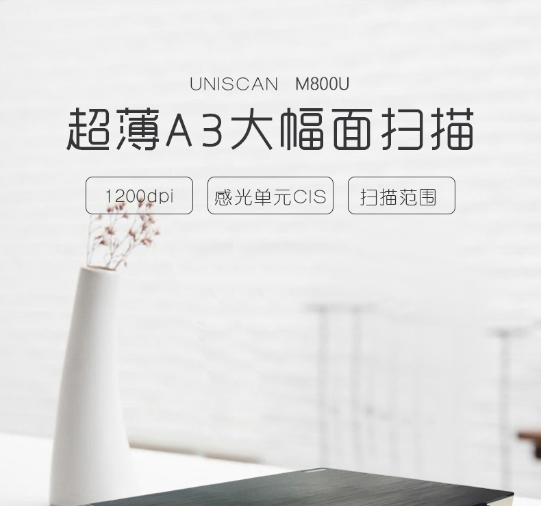 紫光(UNIS)Uniscan M800U A3幅面扫描仪 超薄高清高速微边距彩色文档文稿平板a3扫描仪