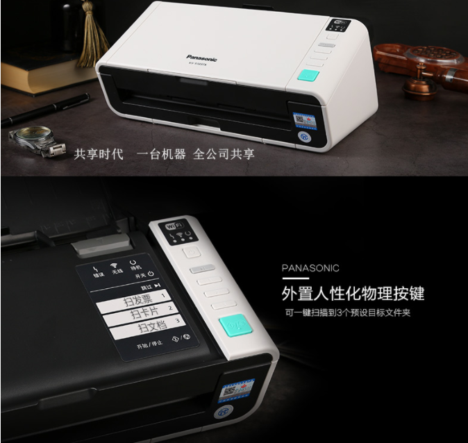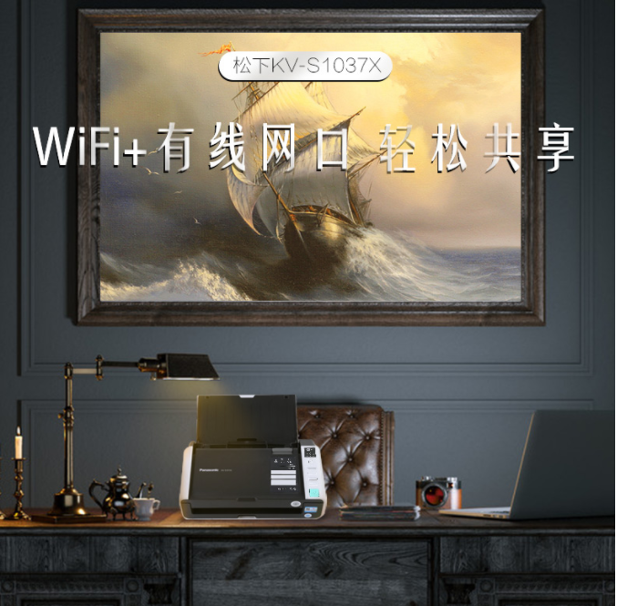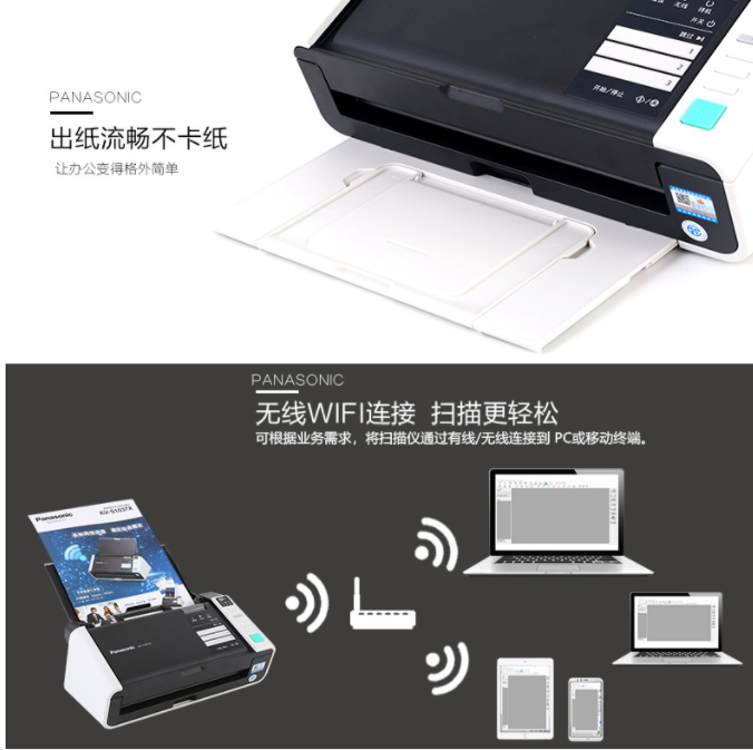 松下(Panasonic)KV-S1037X 扫描仪A4高速高清彩色双面办公文档发票卡片 WIFI+有线网络 银河麒麟 三年质保