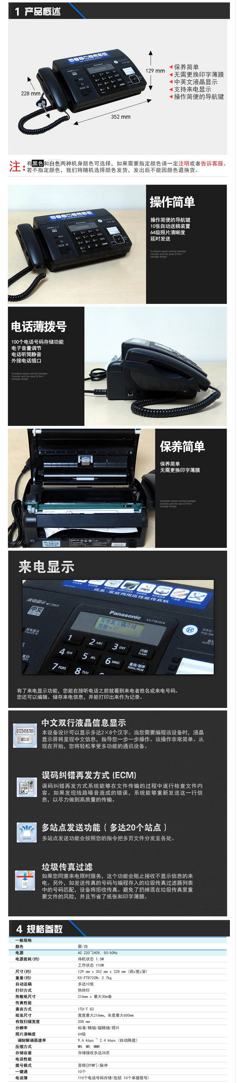 松下 KX-FT872CN 热敏传真机