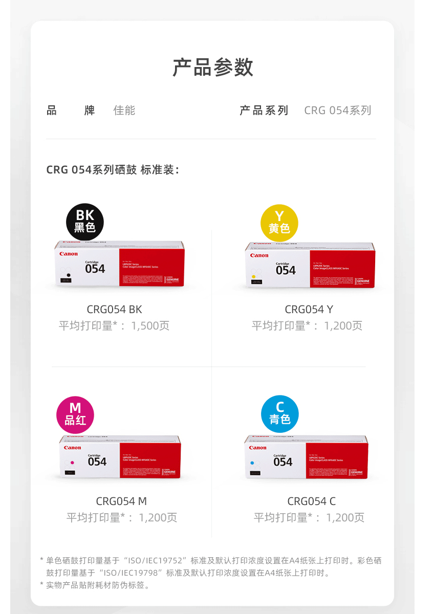 佳能硒鼓CRG054 BK 适用MF645Cx/MF643Cdw/MF641Cw