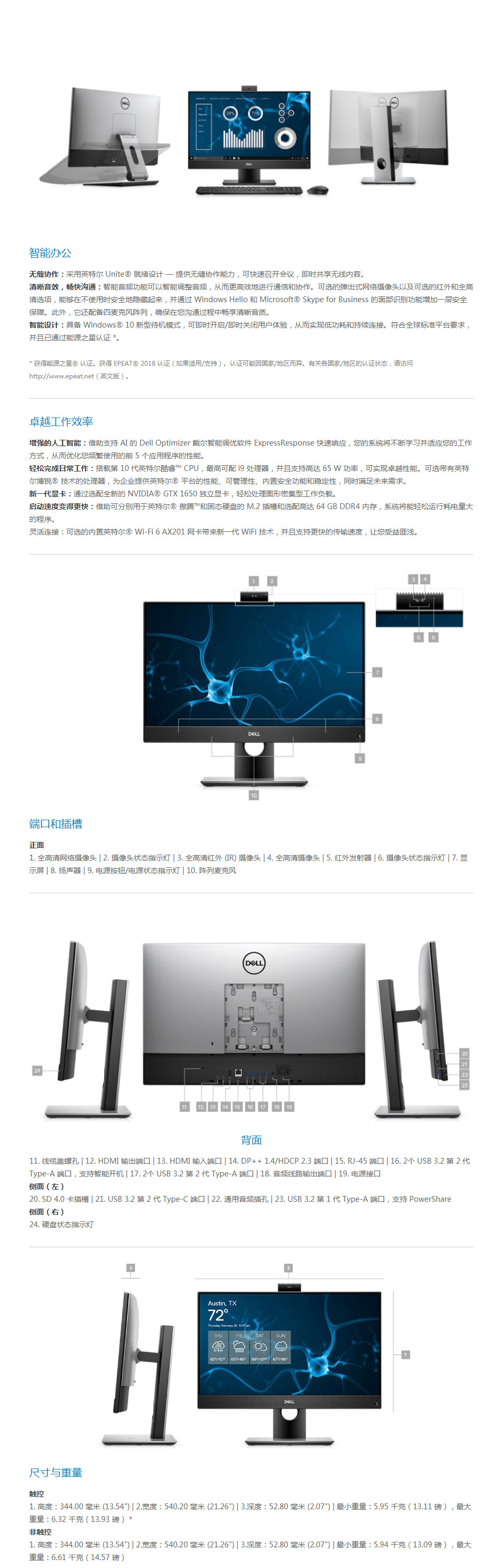 戴尔 OptiPlex 7480 AIO 一体机电脑(I5-10500/8G/1T+128GSSD/Win10H/无线键鼠/三年保修)