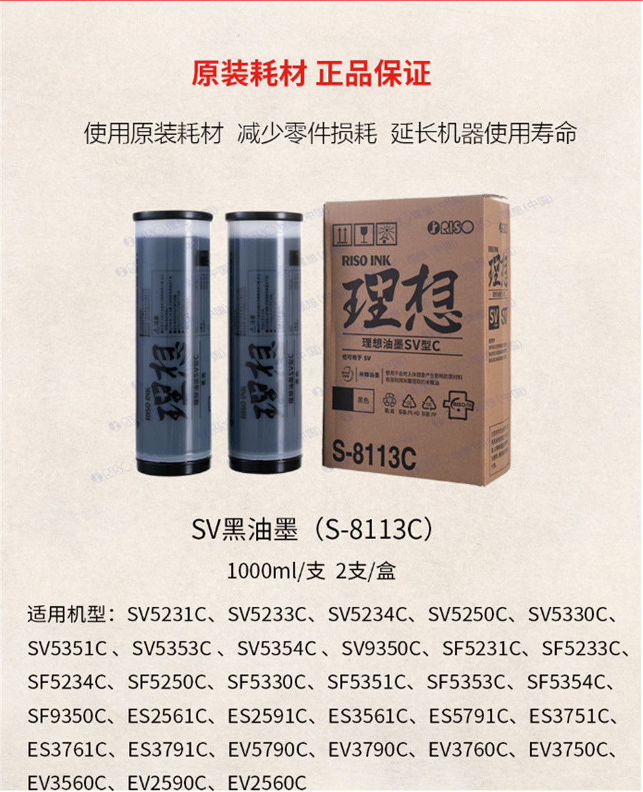 理想 RISO SV黑油墨(S-8113C)适用于:SF5351 单位:支